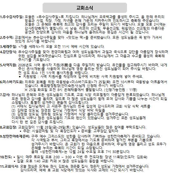 2025년 11월 23일 교회소식