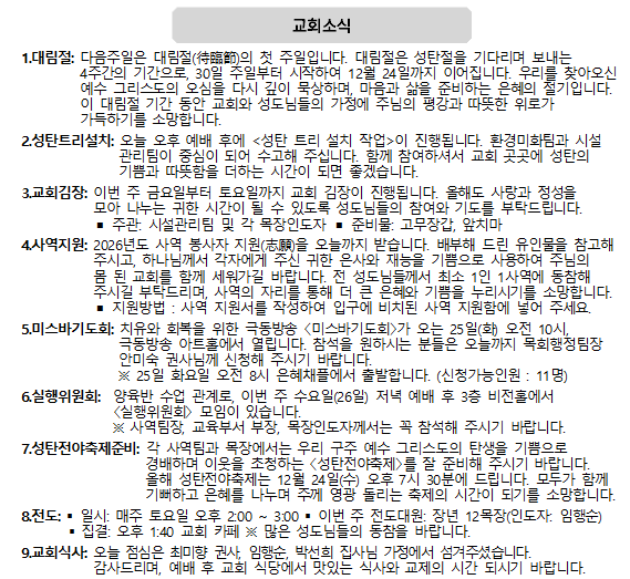 2025년 11월 30일 교회소식