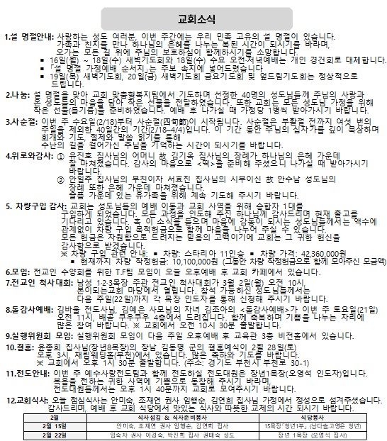 2026년 02월 15일 교회소식