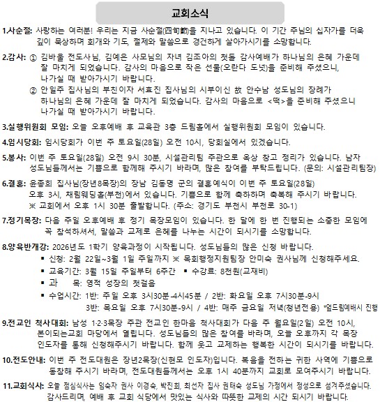 2026년 02월 15일 교회소식